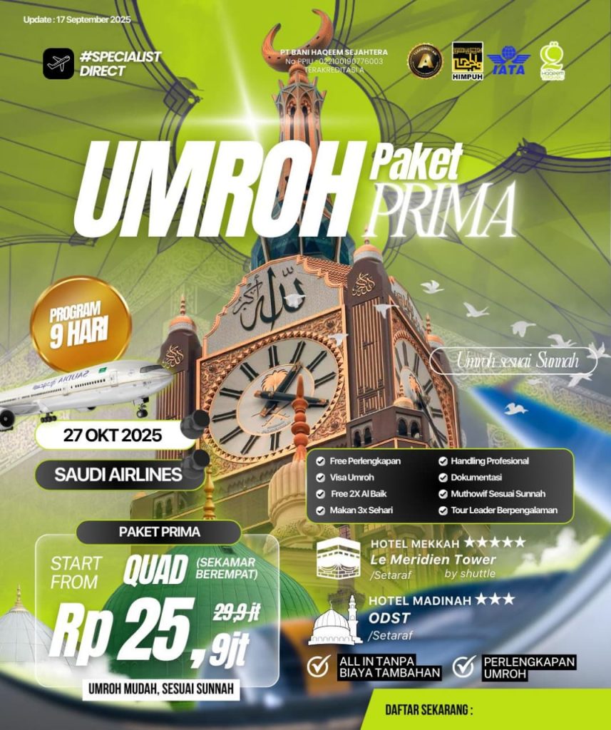 | 8 September 2025 | Umroh Promo | 26,9 Jt | 9 hari |